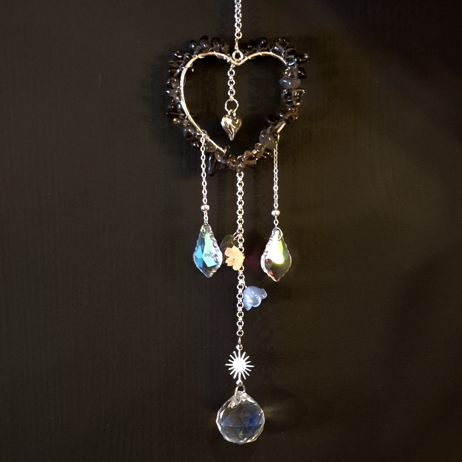 Dråpene er fasettslipt glass, det er denne som lager fargespillet når solen skinner på den.