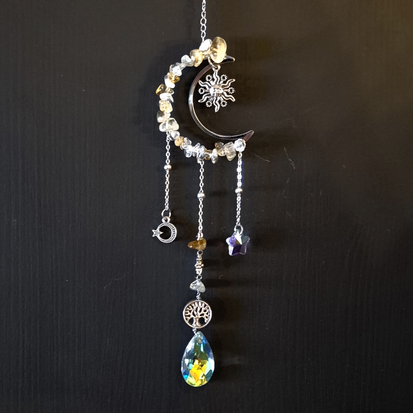Dråpene  er fasettslipt glass, det er denne som lager fargespillet når solen skinner på den.