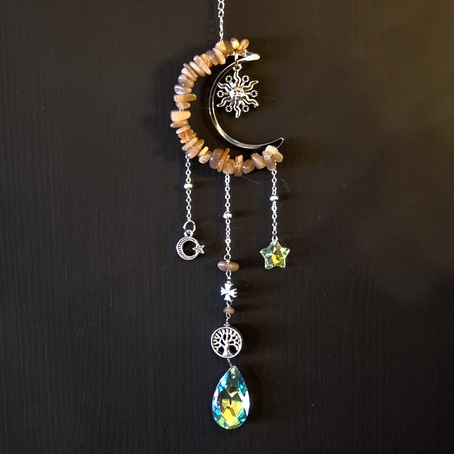 Solfanger (suncatcher) måne/sol/tre månestein aprikos