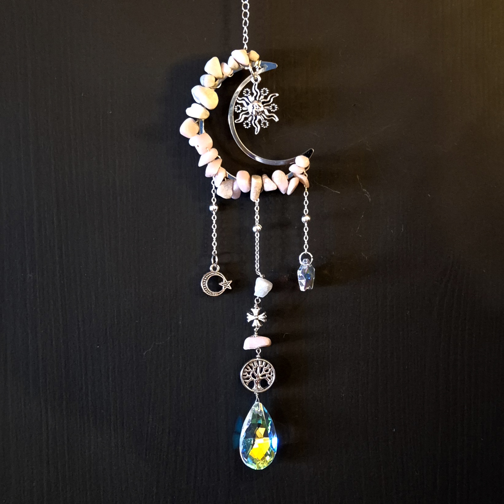 Solfanger (suncatcher) måne/sol/tre opal rosa