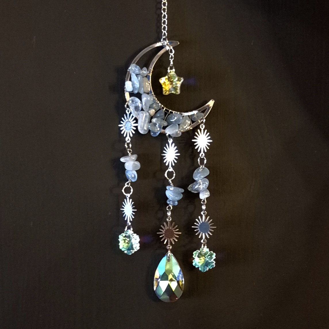 Solfanger (suncatcher) måne/stjerne akvamarin