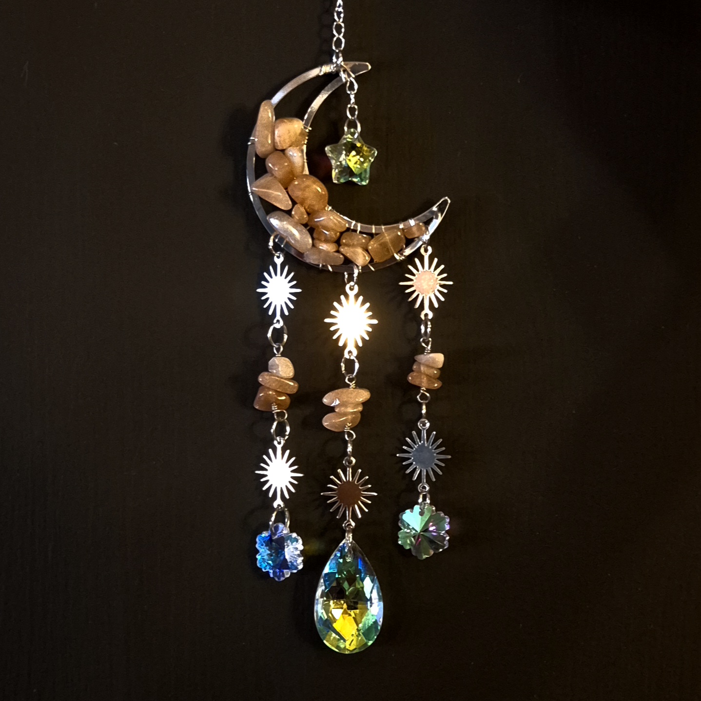 Dråpene er fasettslipt glass, det er denne som lager fargespillet når solen skinner på den.