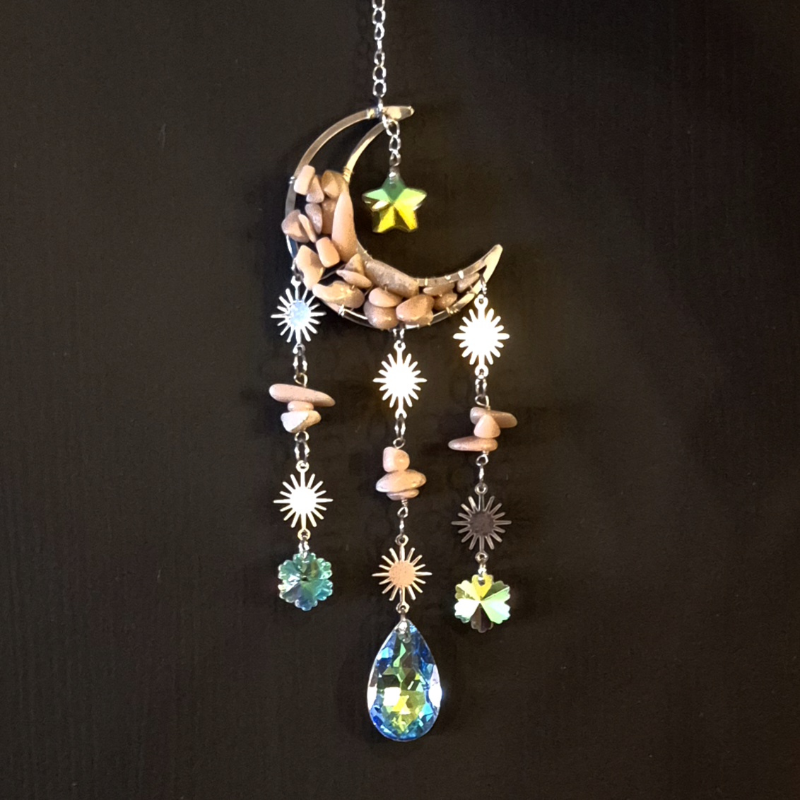 Solfanger (suncatcher) måne/stjerne opal rosa