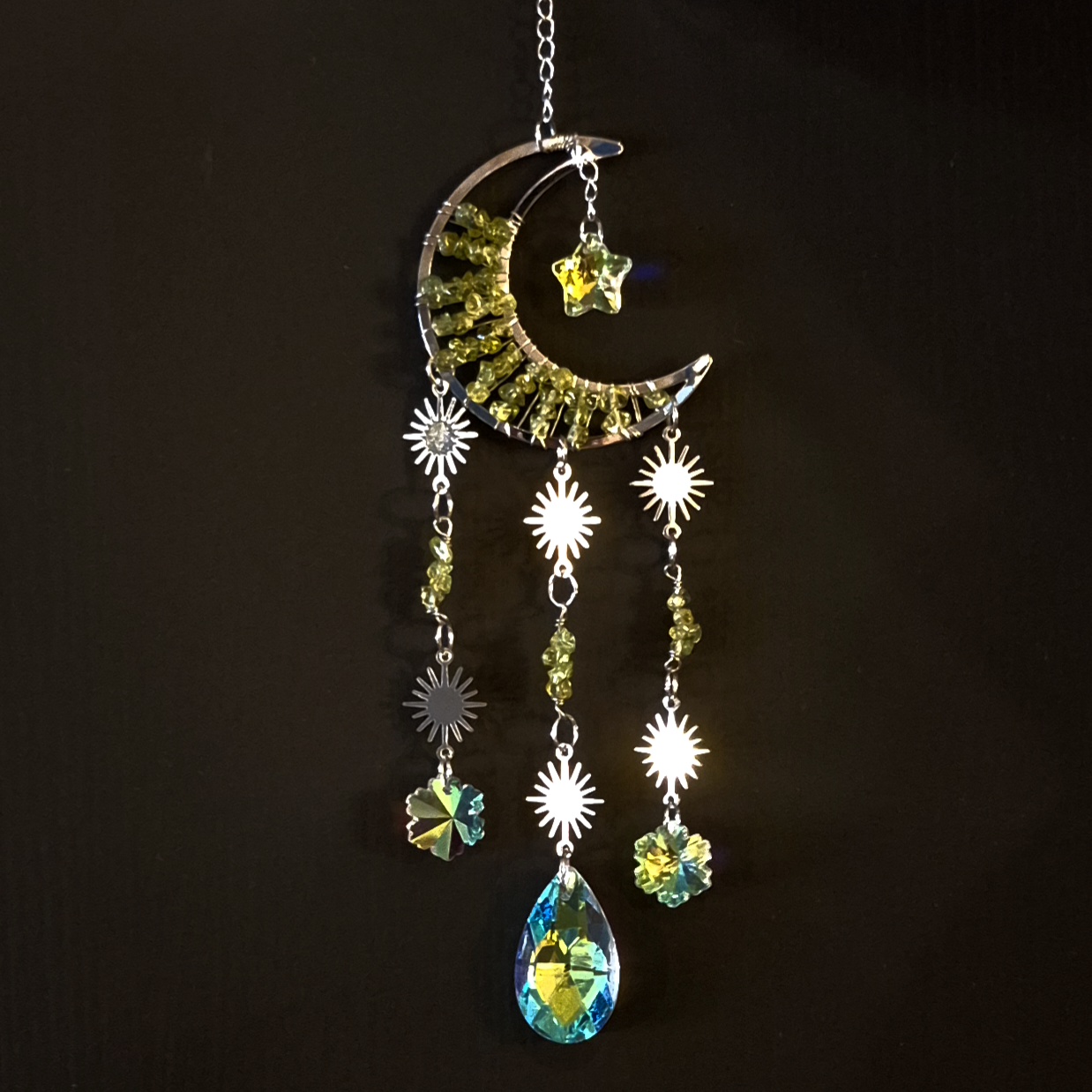 Dråpene er fasettslipt glass, det er denne som lager fargespillet når solen skinner på den.