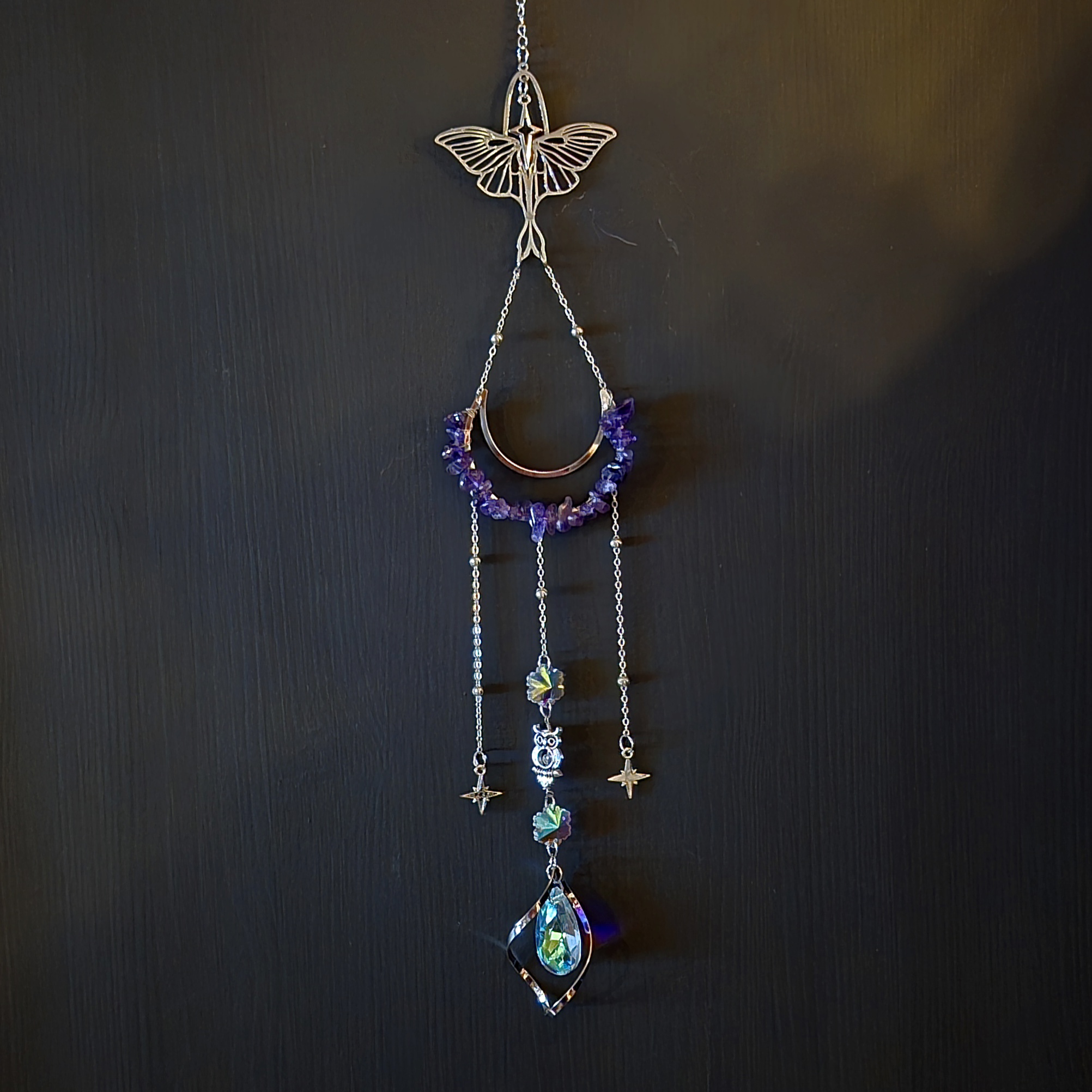 Dråpene er fasettslipt glass, det er denne som lager fargespillet når solen skinner på den.