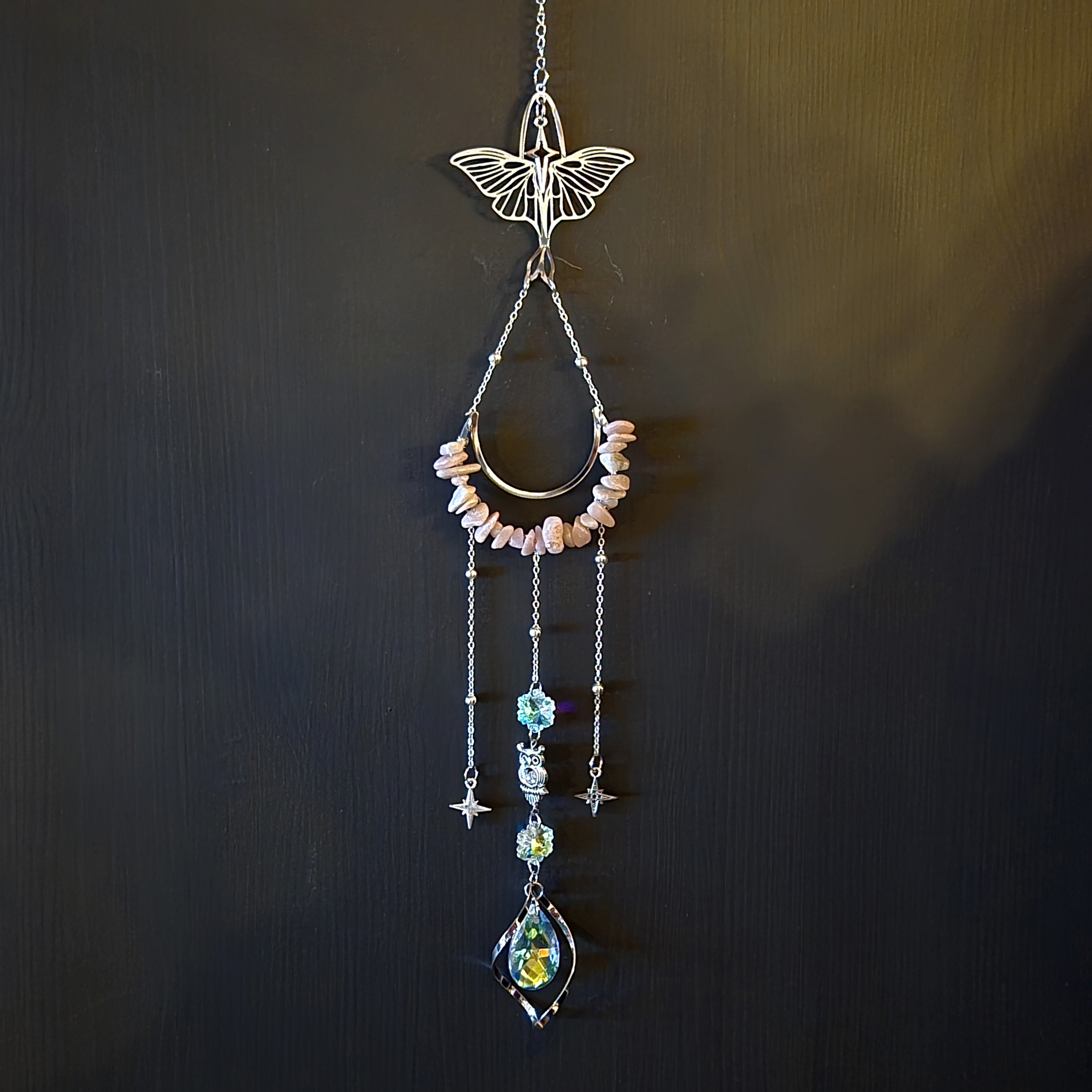 Dråpene er fasettslipt glass, det er denne som lager fargespillet når solen skinner på den.