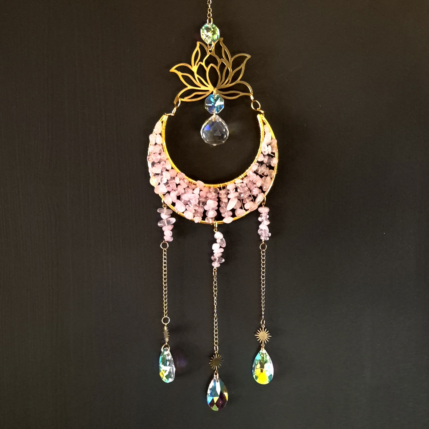 Solfanger (suncatcher) stor måne med lotus gull.