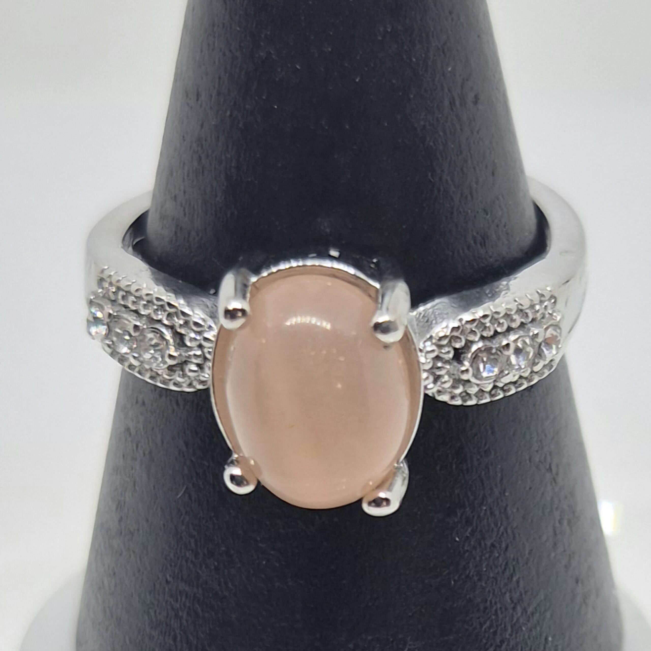 Sølvbelagt og justerbar ring med månestein aprikos.