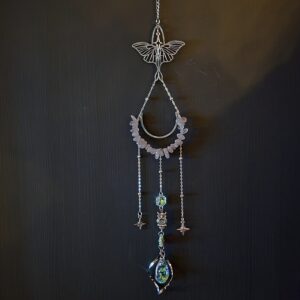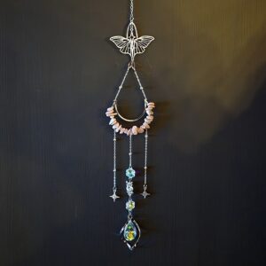Solfanger (suncatcher) måne/ugle rosenkvarts