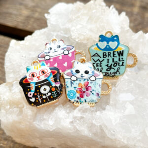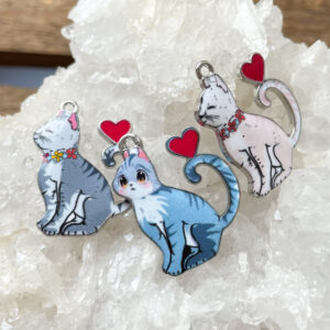 Charms / anheng: Katt sort hjerter emalje nr 43