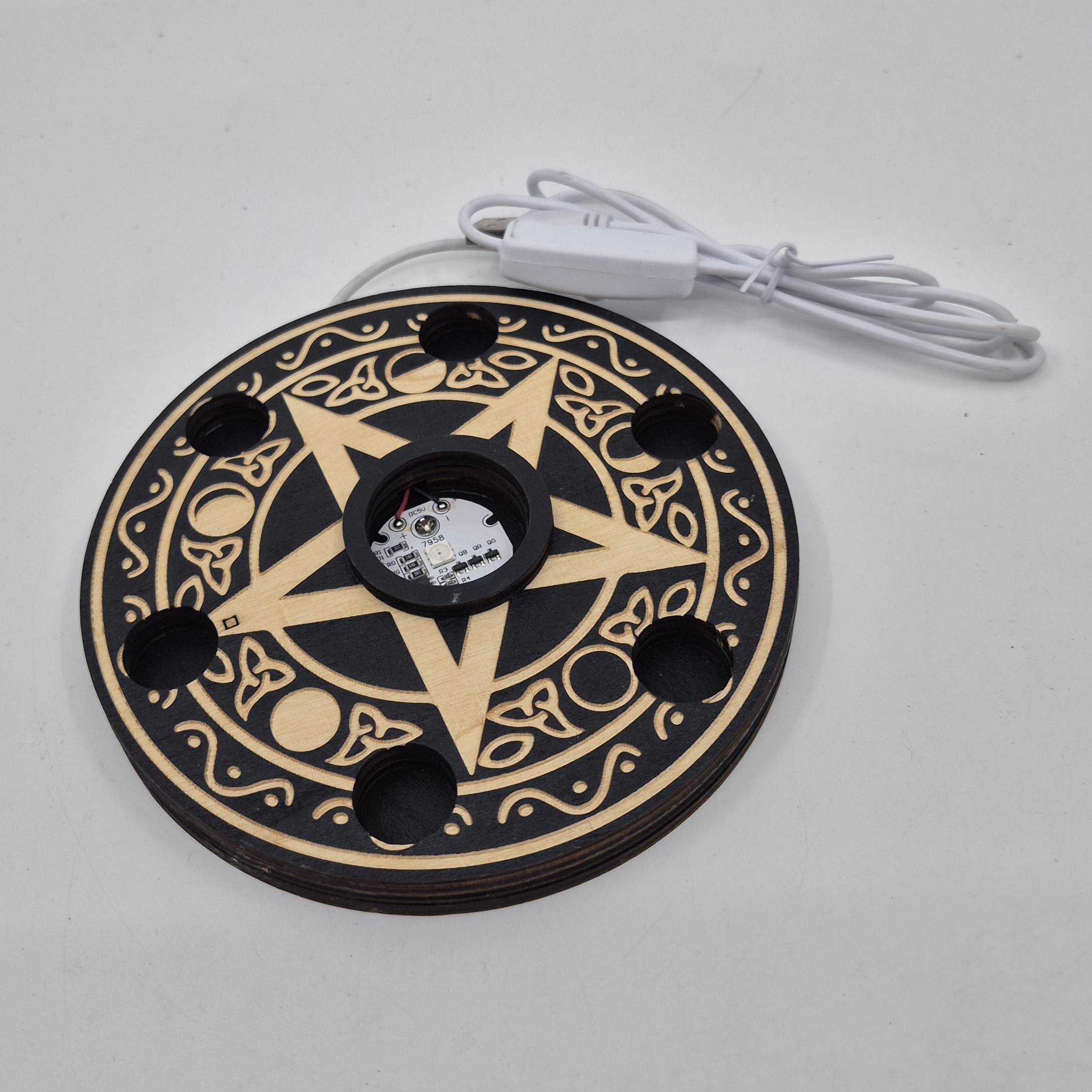 På denne er det plass til 6 kuler i tillegg til krystallen du setter på lyset.