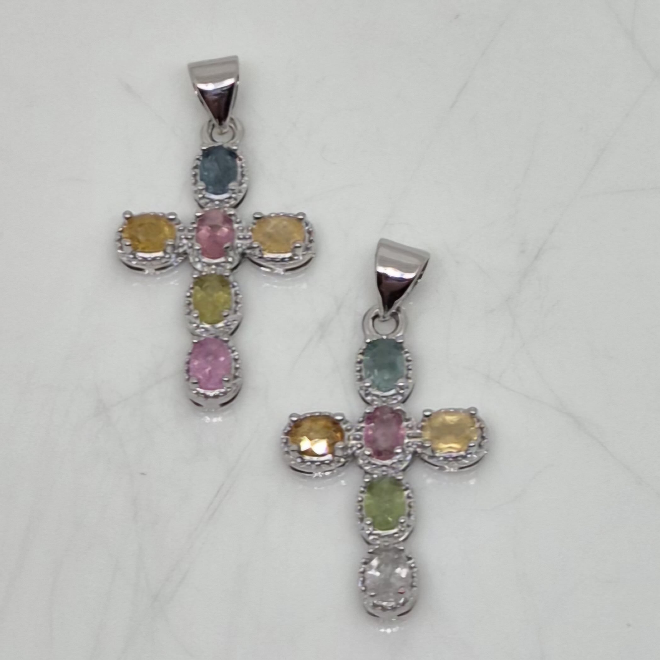 Sølvbelagt anheng med turmalin miks.