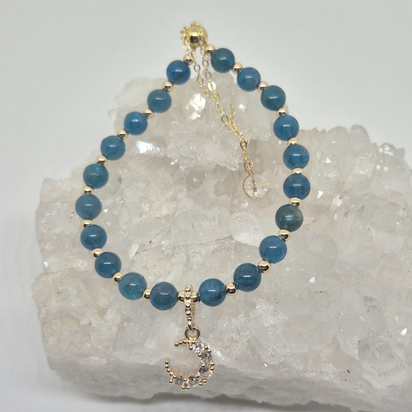 Armbånd apatitt med måne gull.
