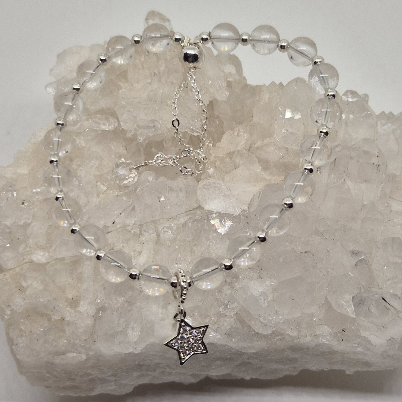 Armbånd bergkrystall stjerne sølv.