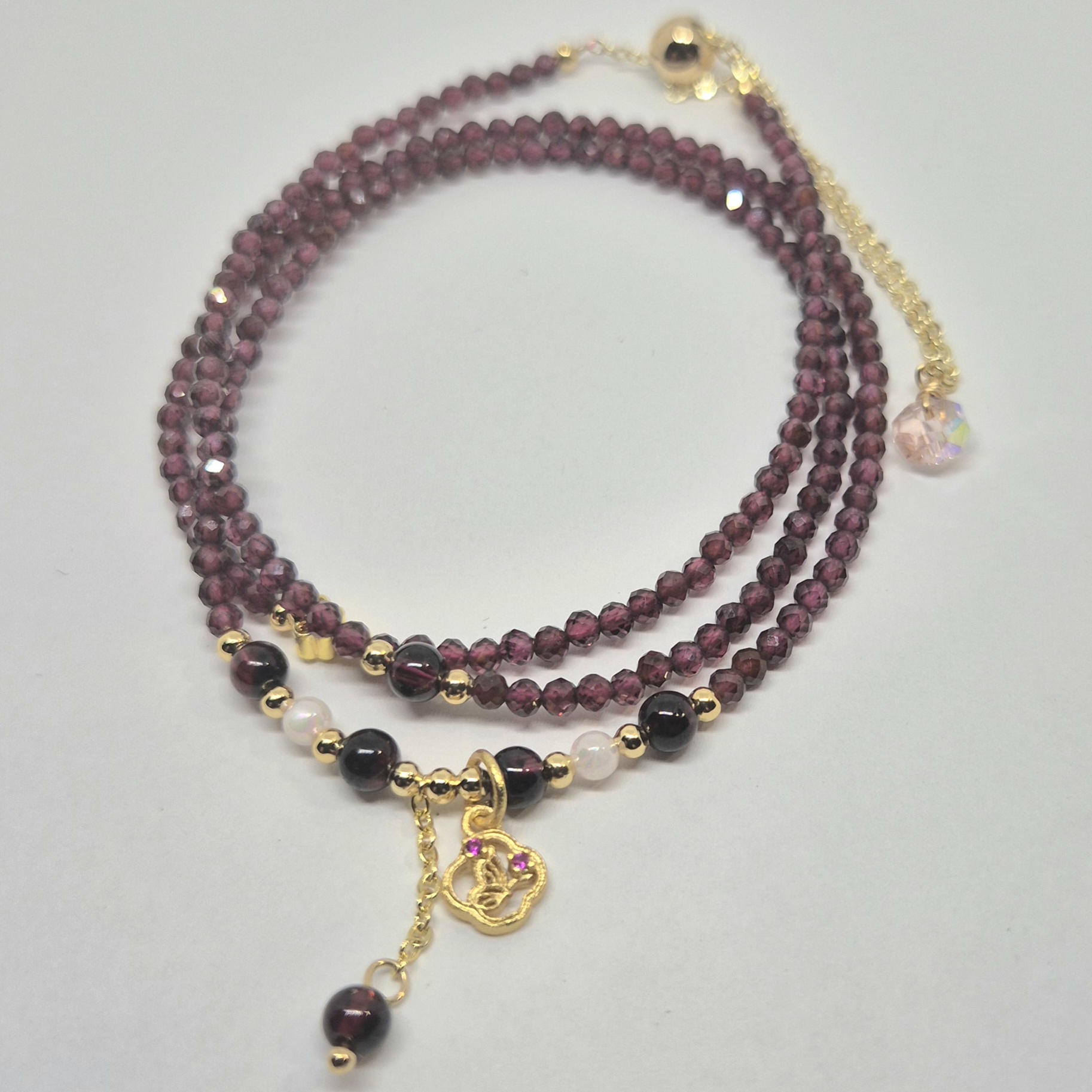 Armbånd granat og noen andre krystaller som dekor.