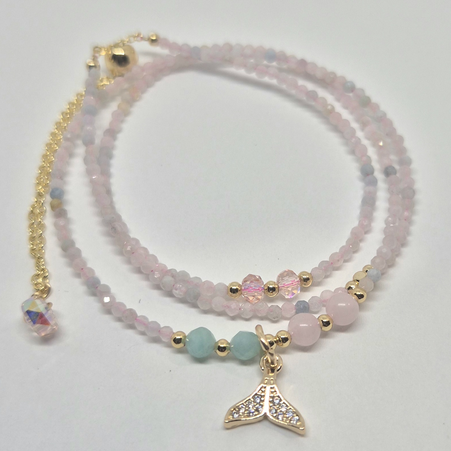 Armbånd morganit og noen andre krystaller som dekor.