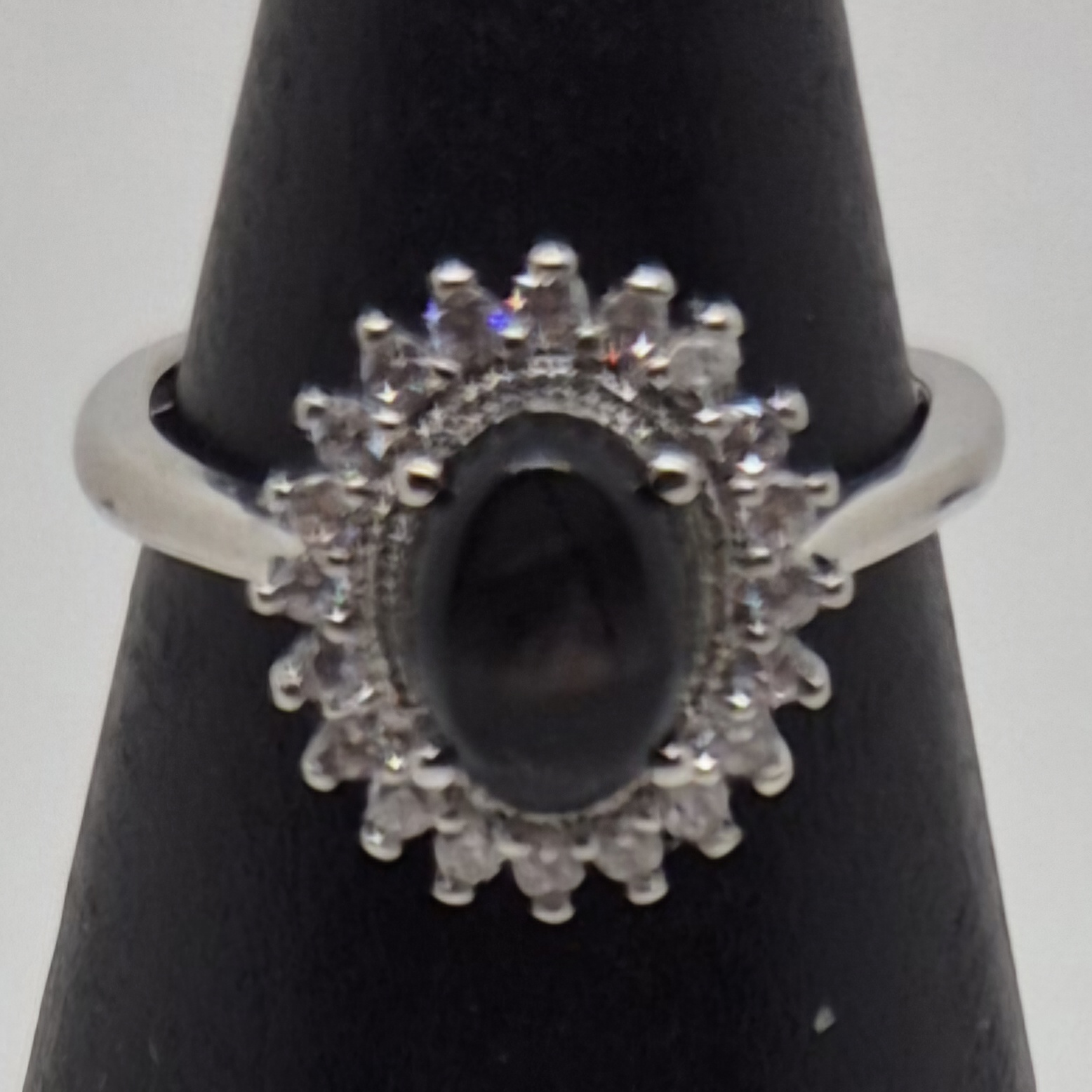 Sølvbelagt og justerbar ring med hyperstein.