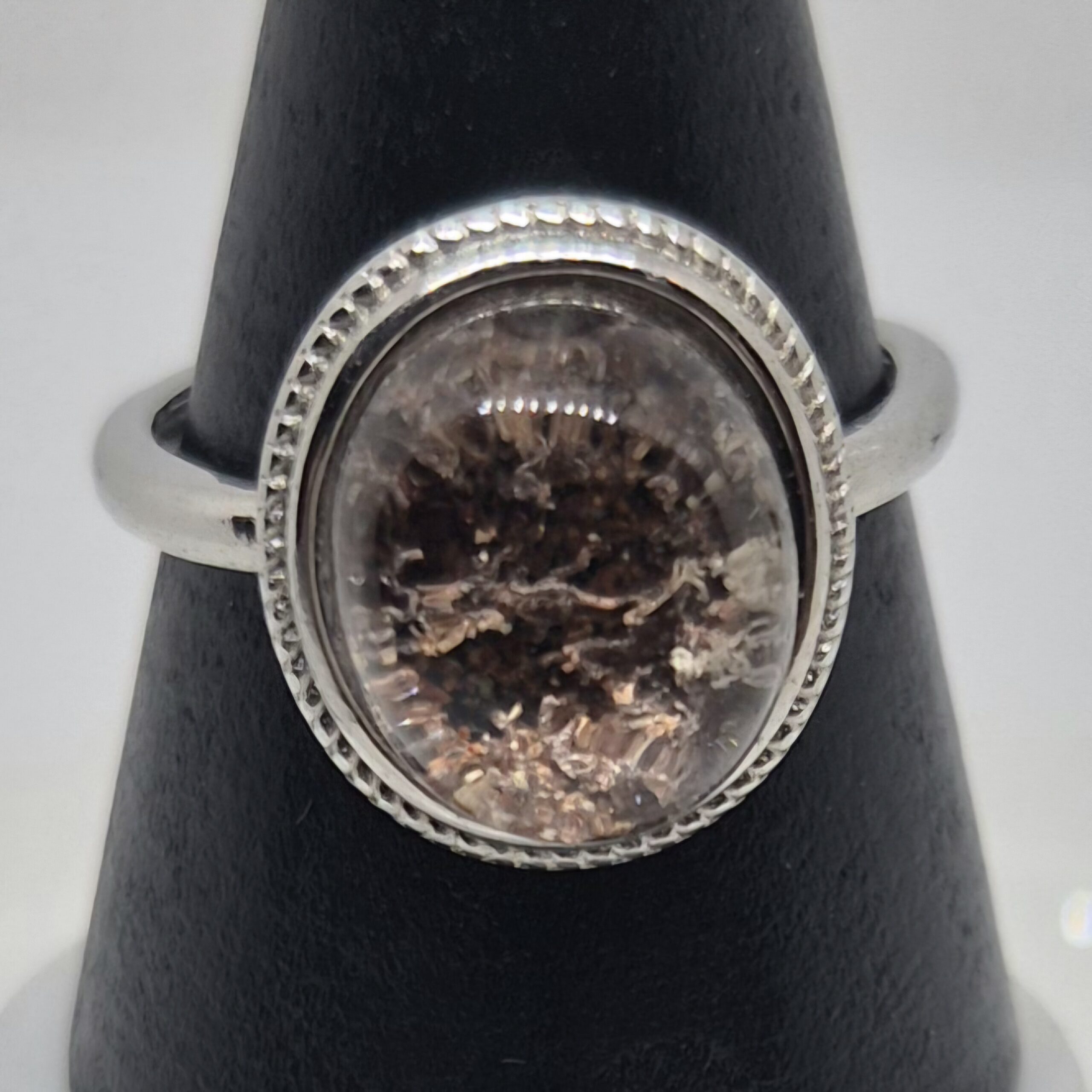 Sølvbelagt og justerbar ring med lodonitt (garden kvarts).