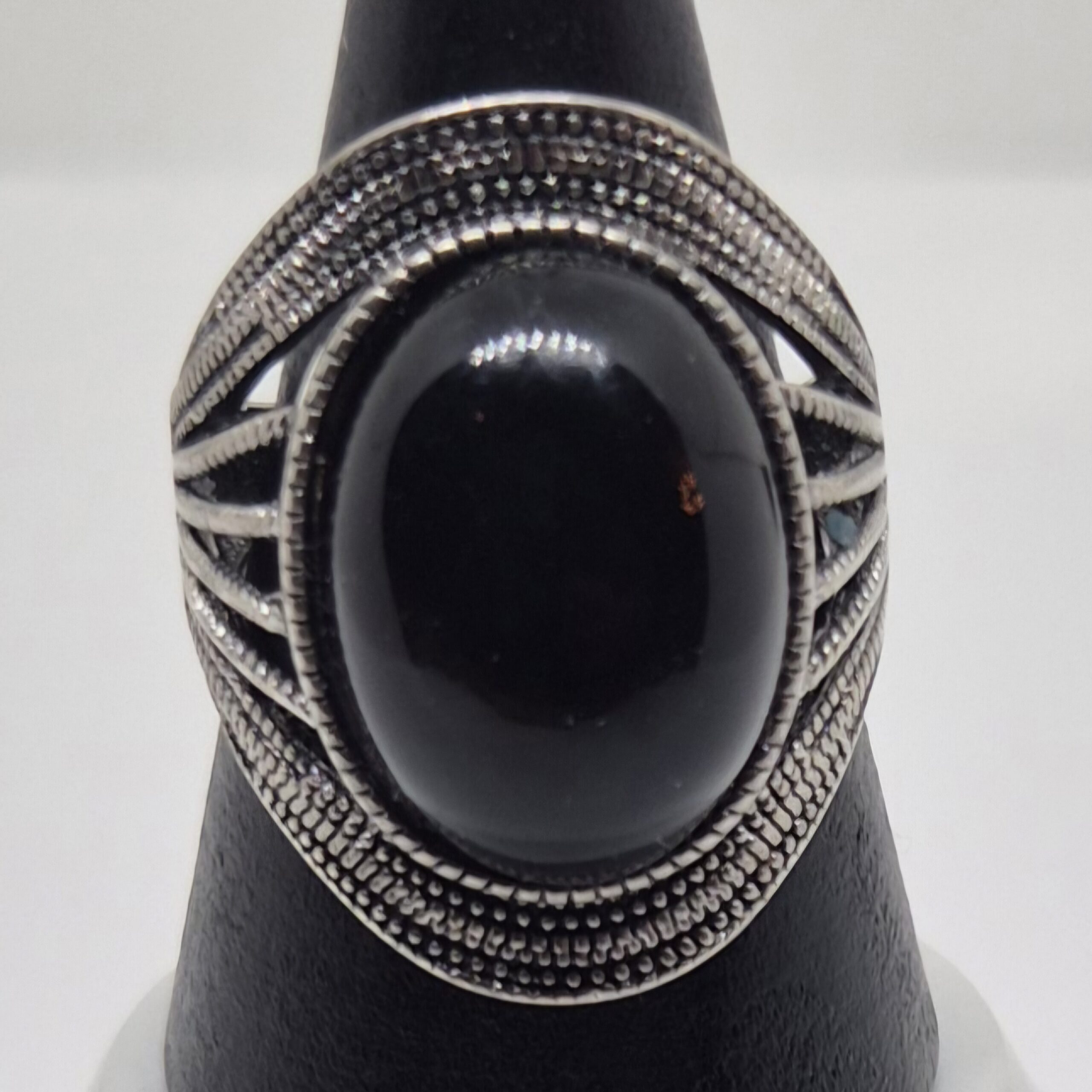Ring obsidian sort stor nr 8