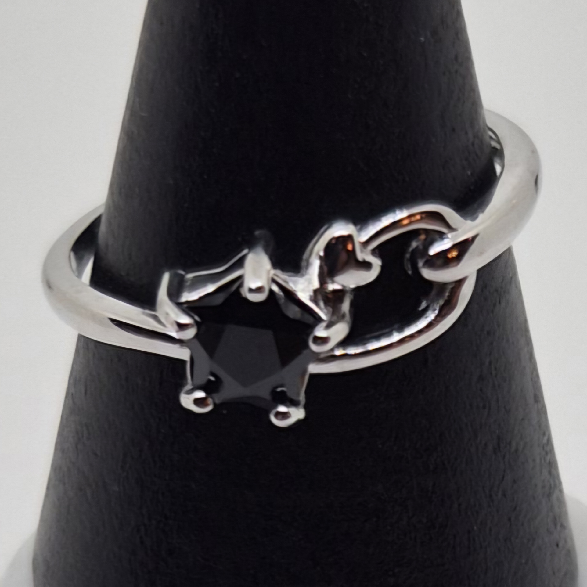 Sølvbelagt og justerbar ring med spinell sort.