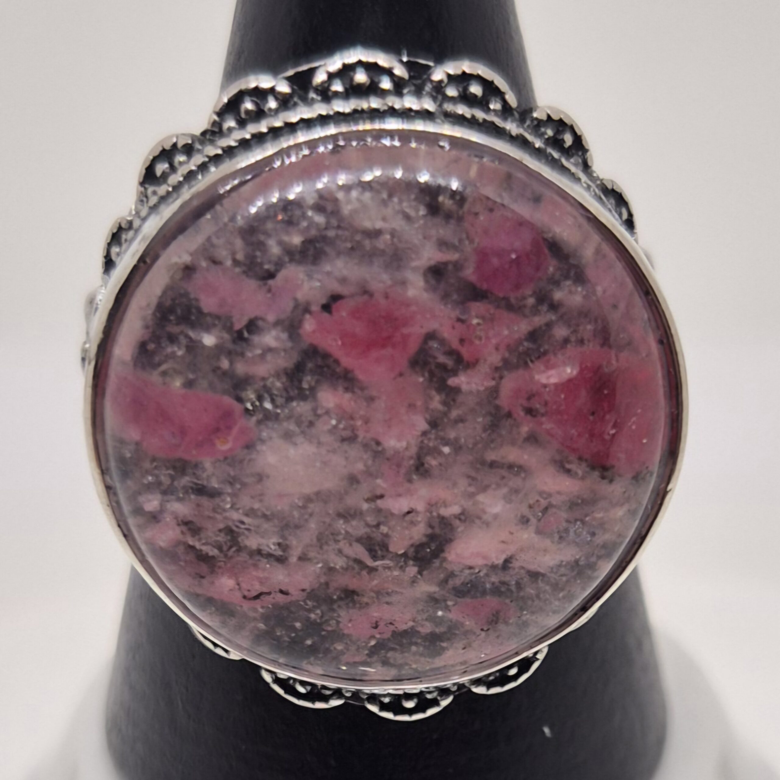 Sølvbelagt og justerbar ring med rhodonitt.