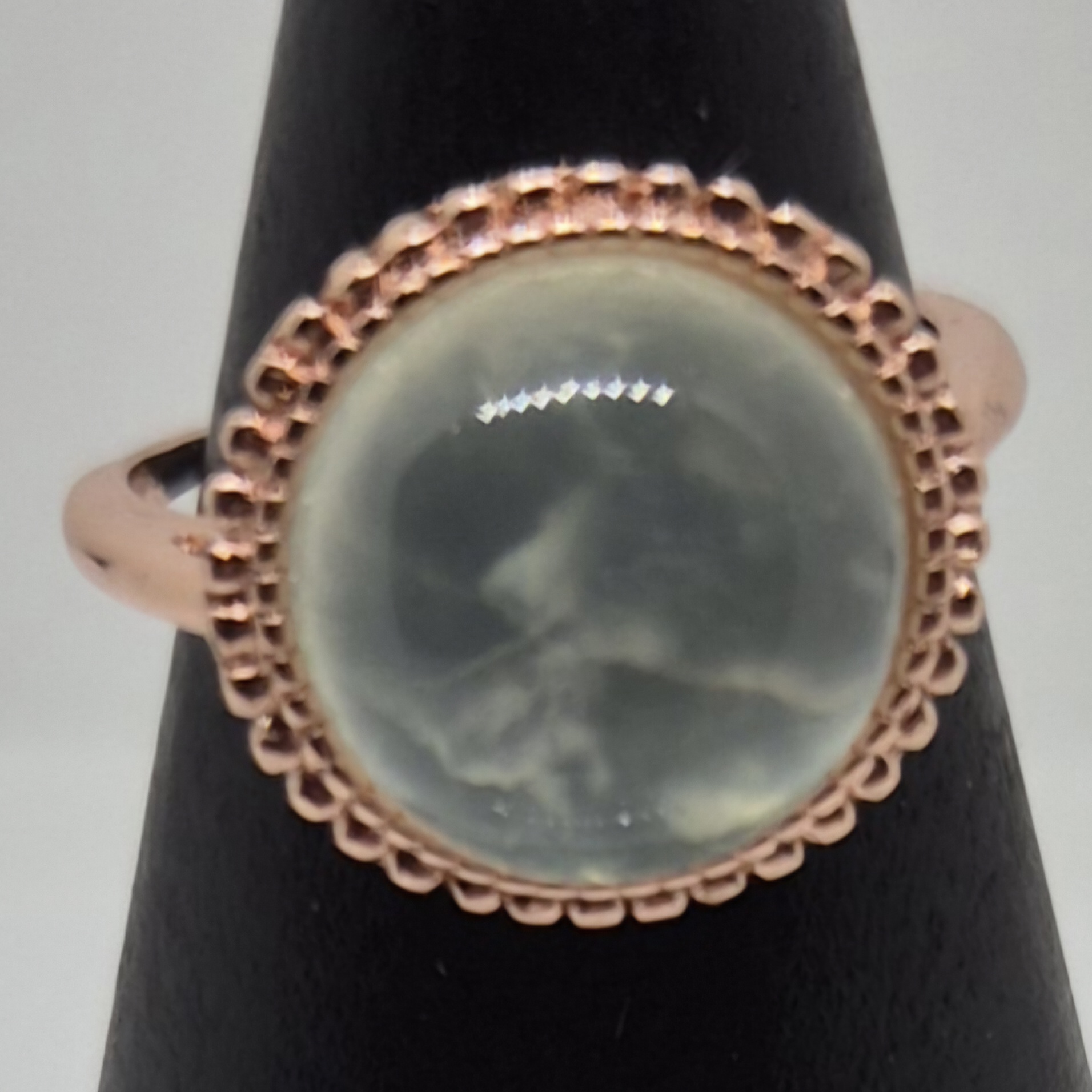 Kobber med rosegull og justerbar ring med prehnit.