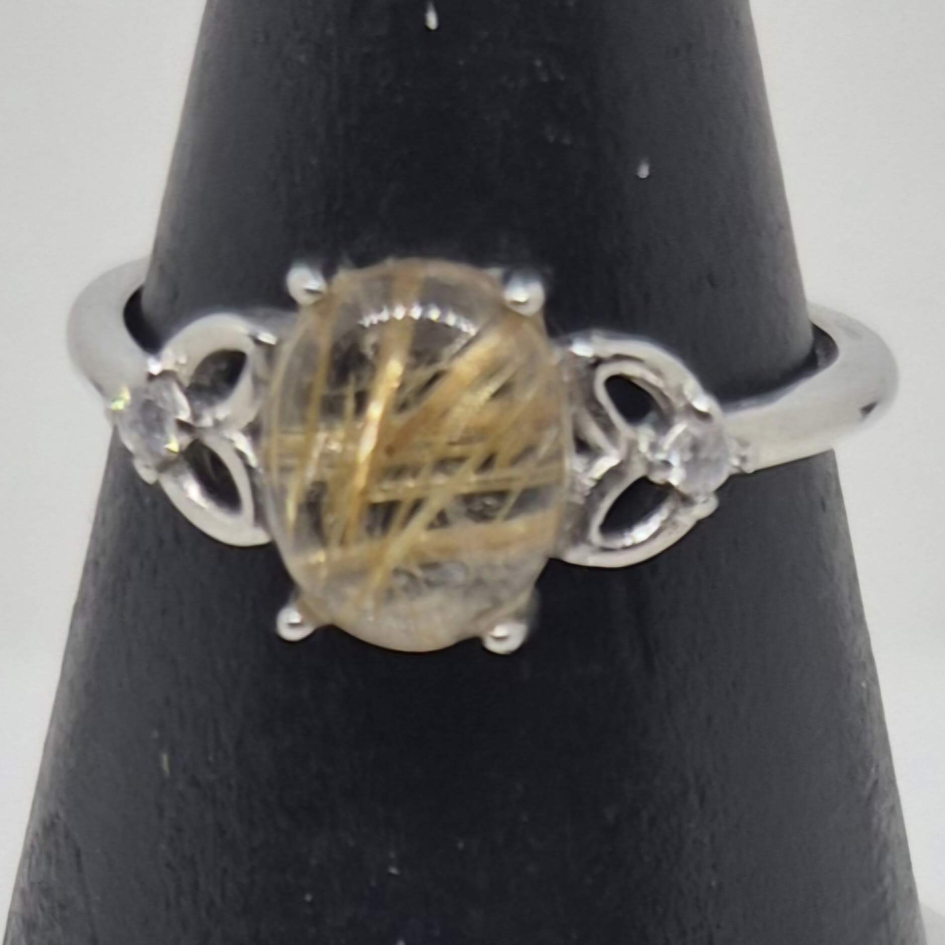 Sølvbelagt og justerbar ring med rutilkvarts.