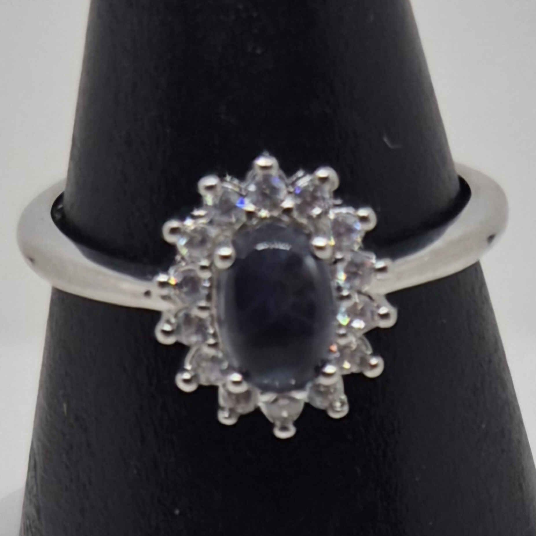 Sølvbelagt og justerbar ring med vannsafir (iolit)